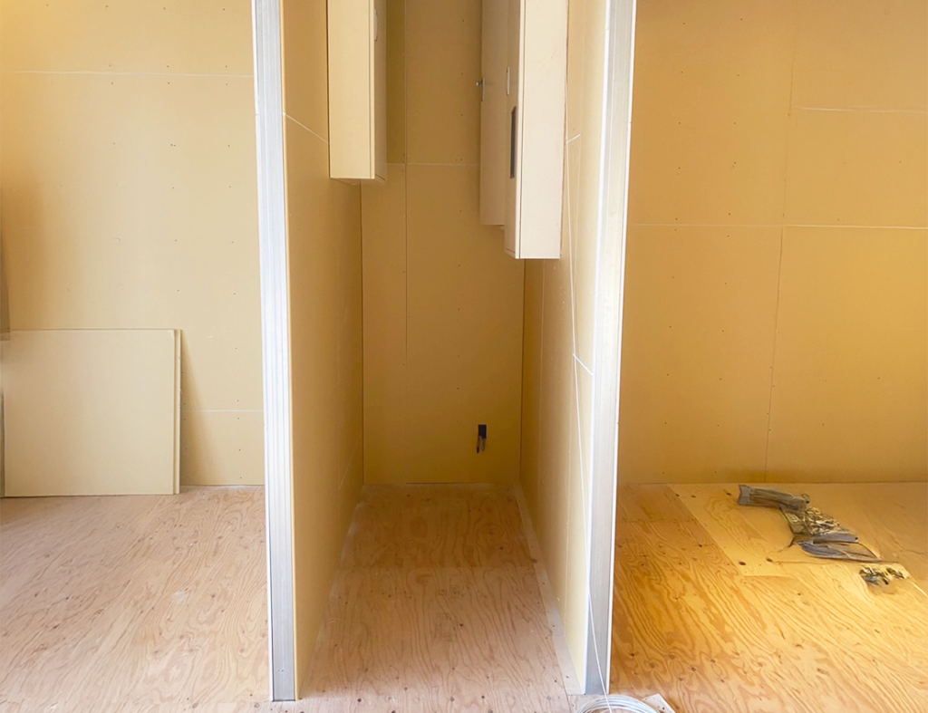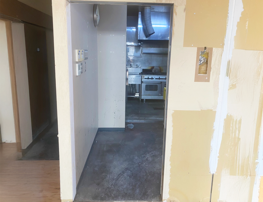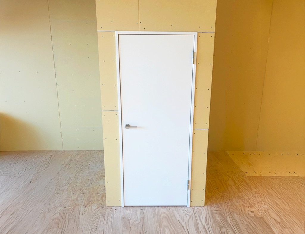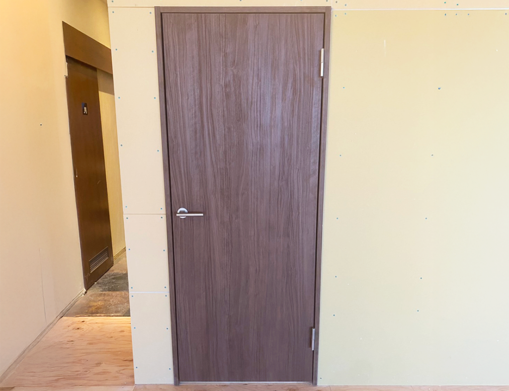 既存開口部に合わせてドアを取り付け、開閉がスムーズになるよう細かく調整しました。 内装との調和を意識し、すっきりとした仕上がりにしています。